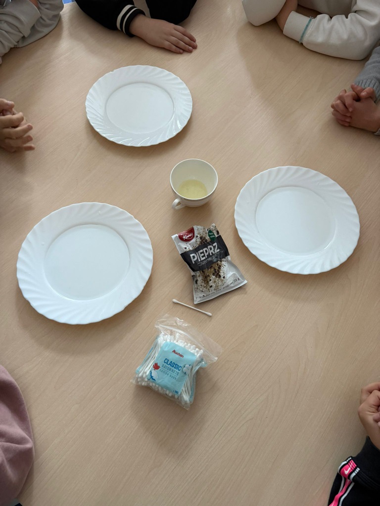Pieprz: wsypany do wody utrzymuje się na powierzchni, natomiast gdy zanurzymy patyczek nasączony płynem, to widzimy jak warstwa pieprzu odsuwa się od patyczka oraz nie obkleja go.