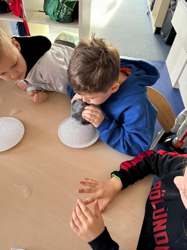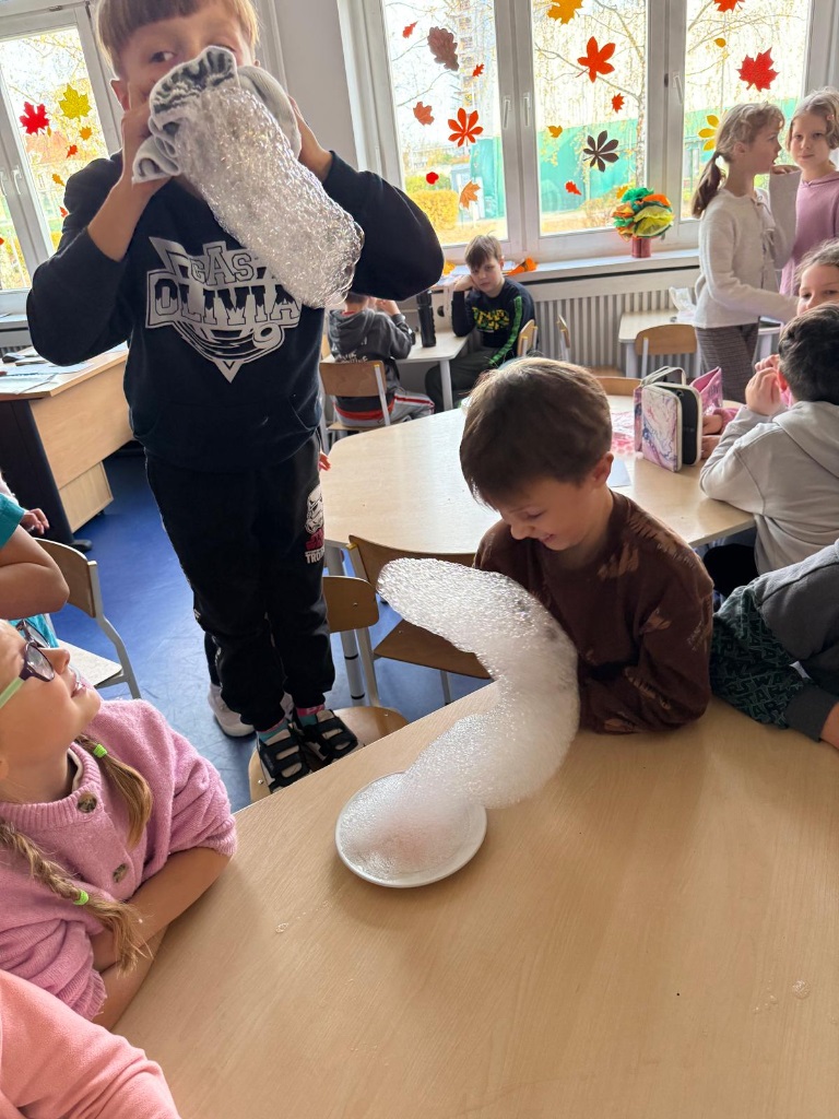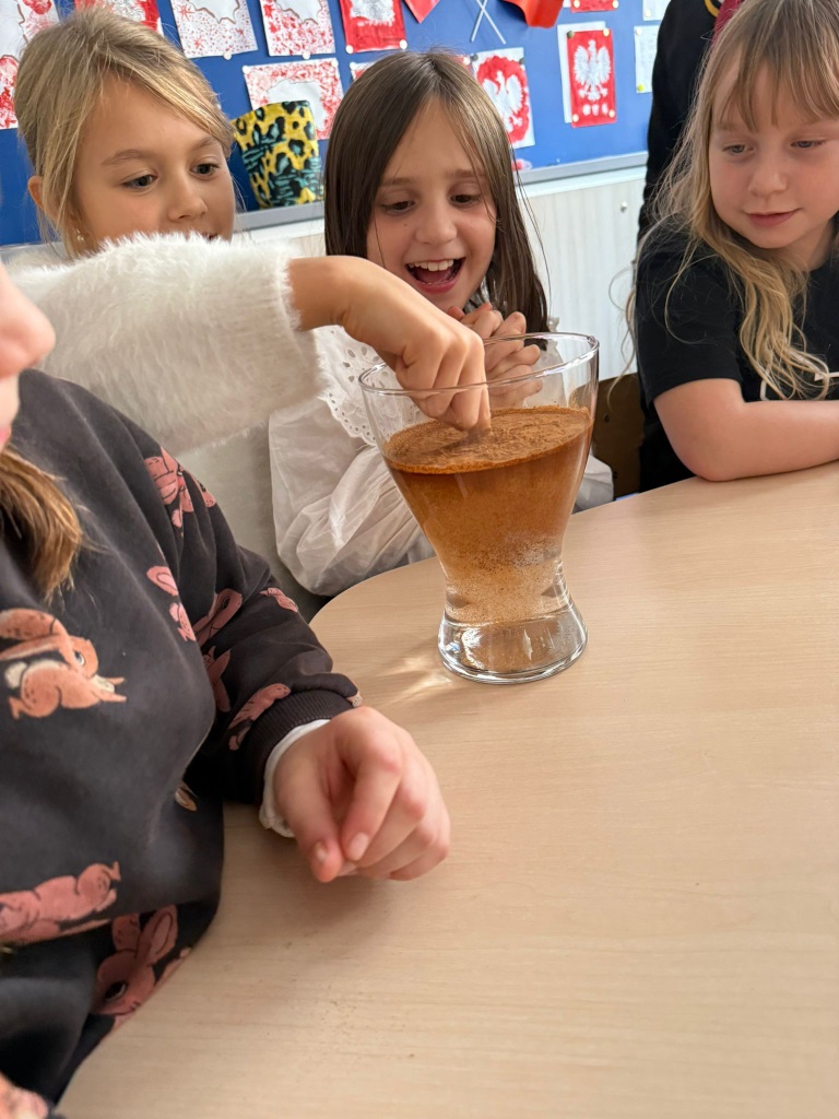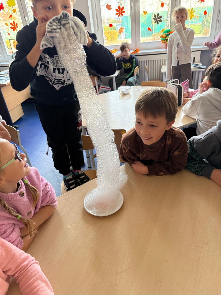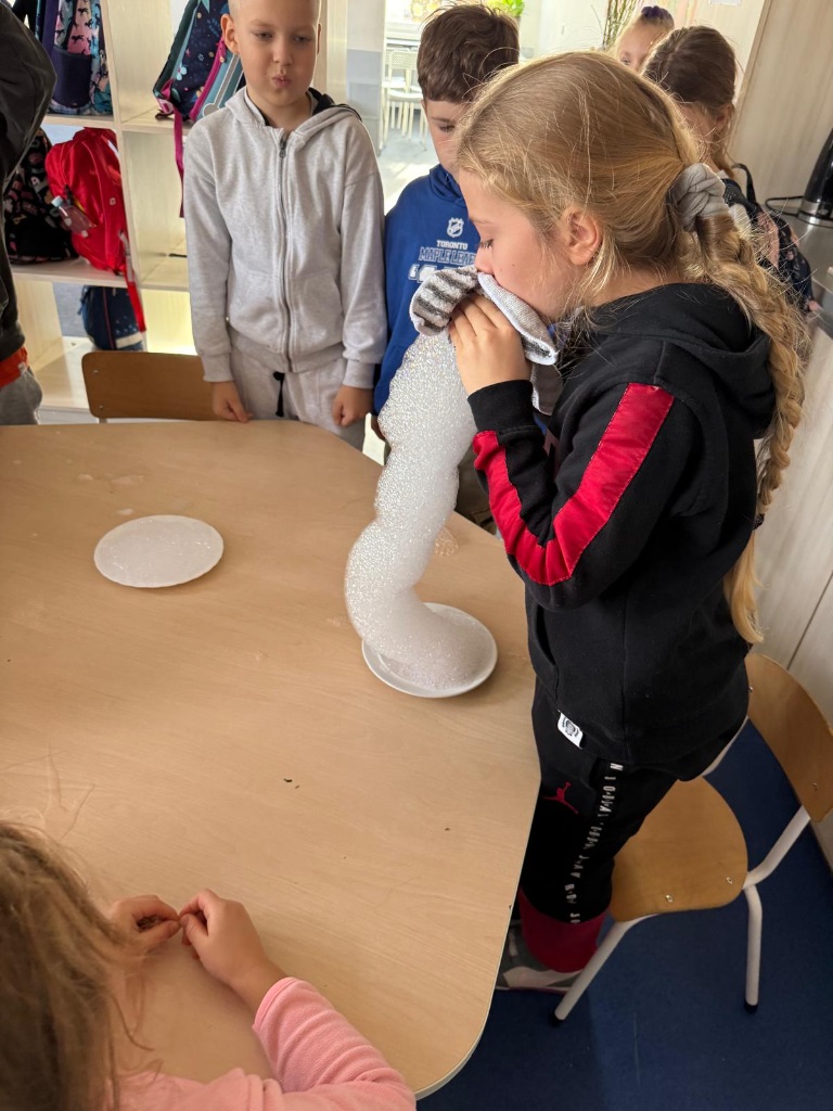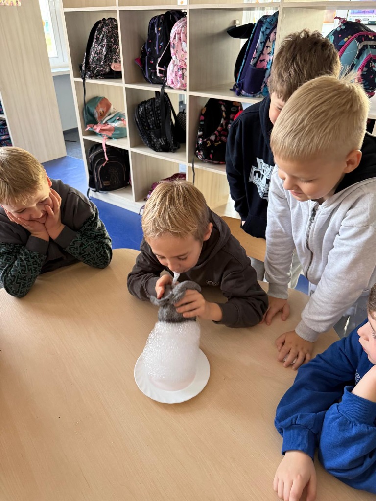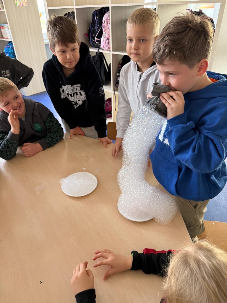 Nasi uczniowie pogłębiają wiedzę o otaczającym nas świecie poprzez liczne doświadczenia fizyczno - chemiczne, które dokonywane są w świetlicy szkolnej. Każdemu uczniowi tego rodzaju zajęcia sprawiają dużo przyjemności i zaangażowania.