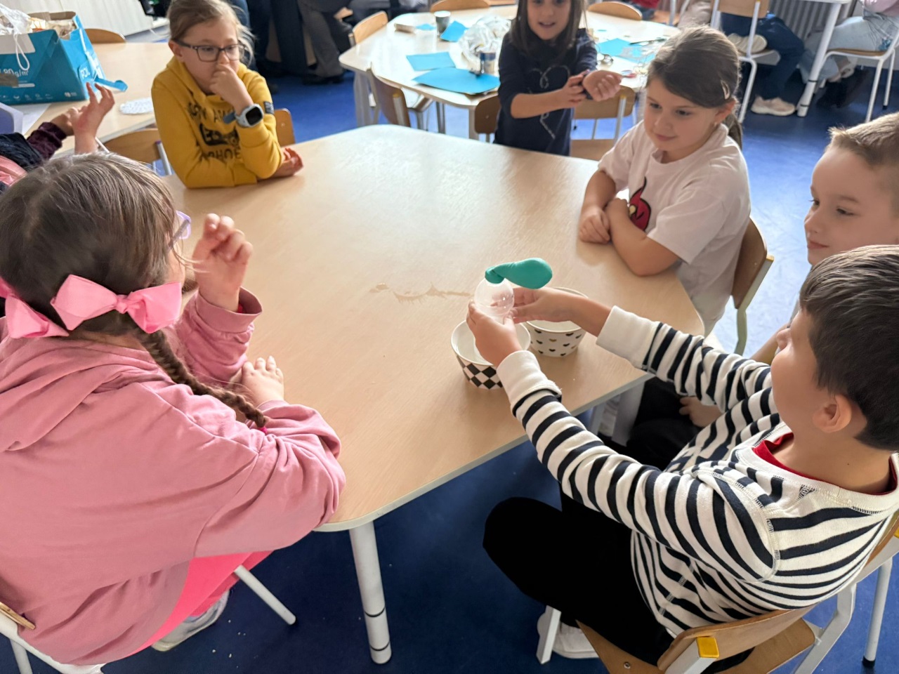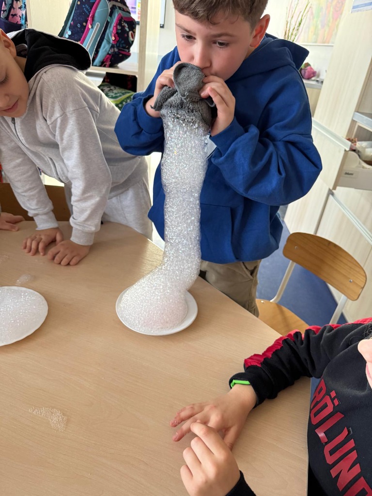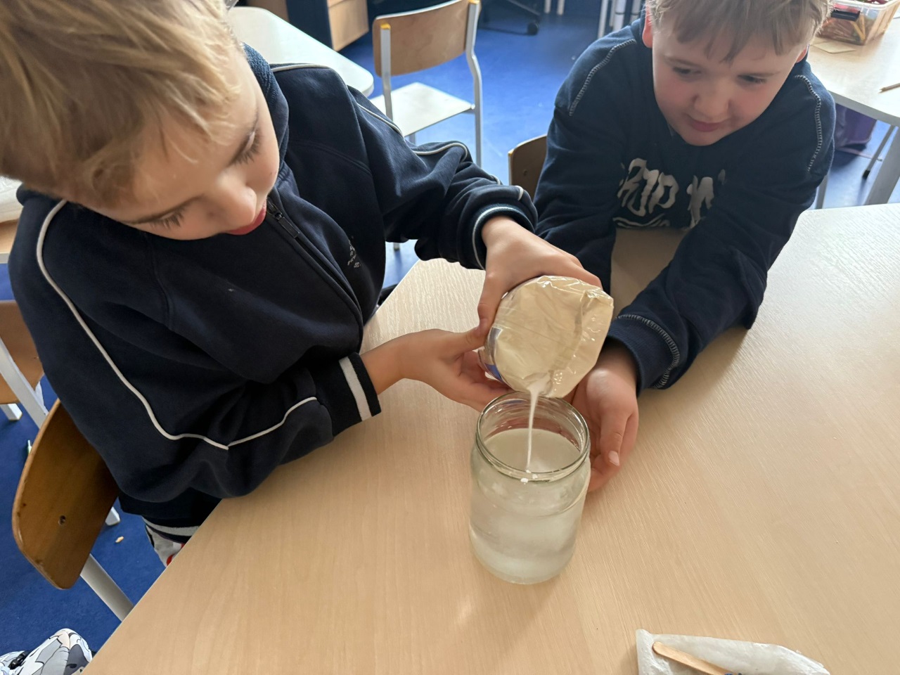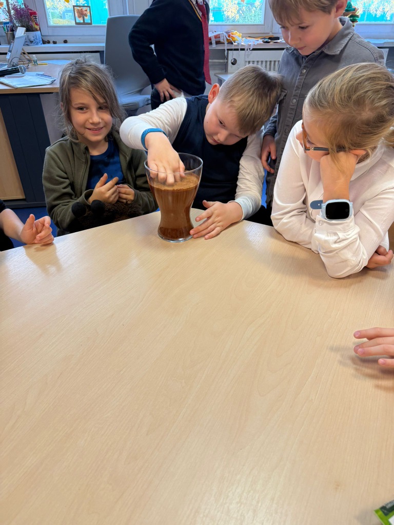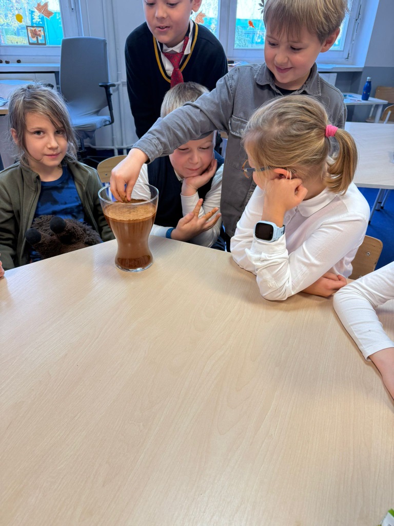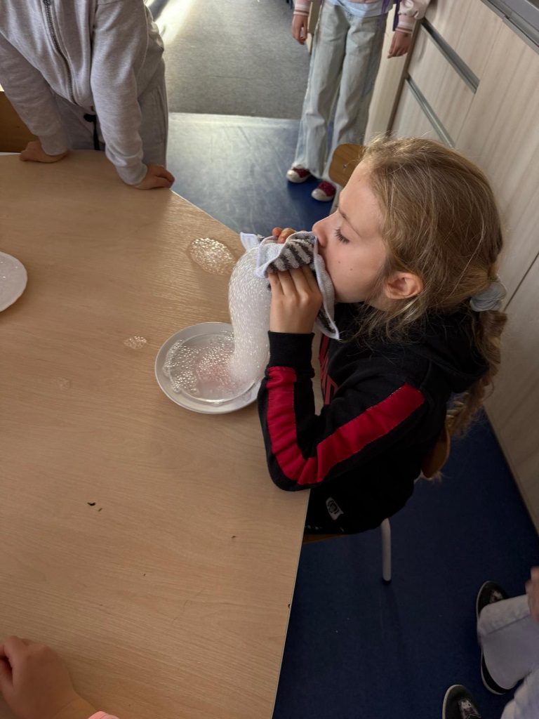 Nasi uczniowie pogłębiają wiedzę o otaczającym nas świecie poprzez liczne doświadczenia fizyczno - chemiczne, które dokonywane są w świetlicy szkolnej. Każdemu uczniowi tego rodzaju zajęcia sprawiają dużo przyjemności i zaangażowania.