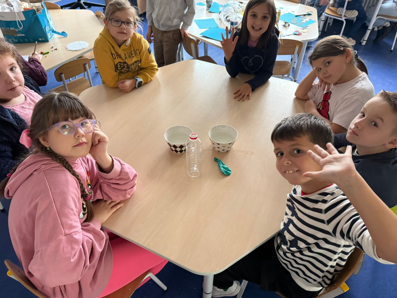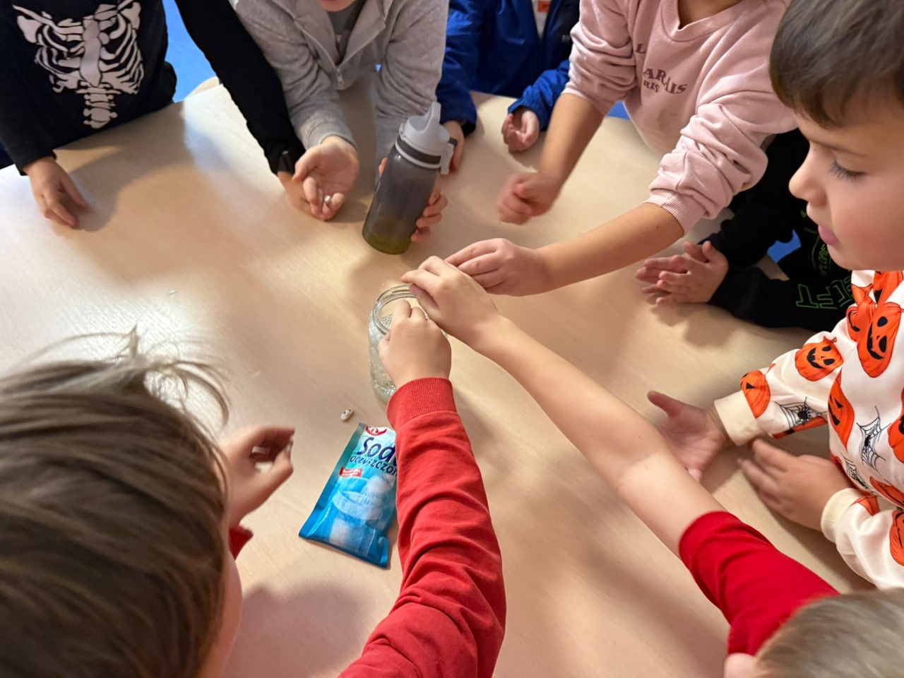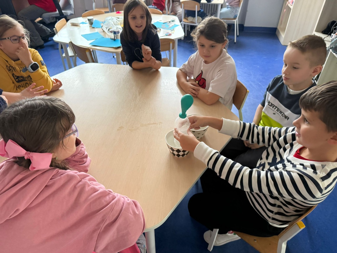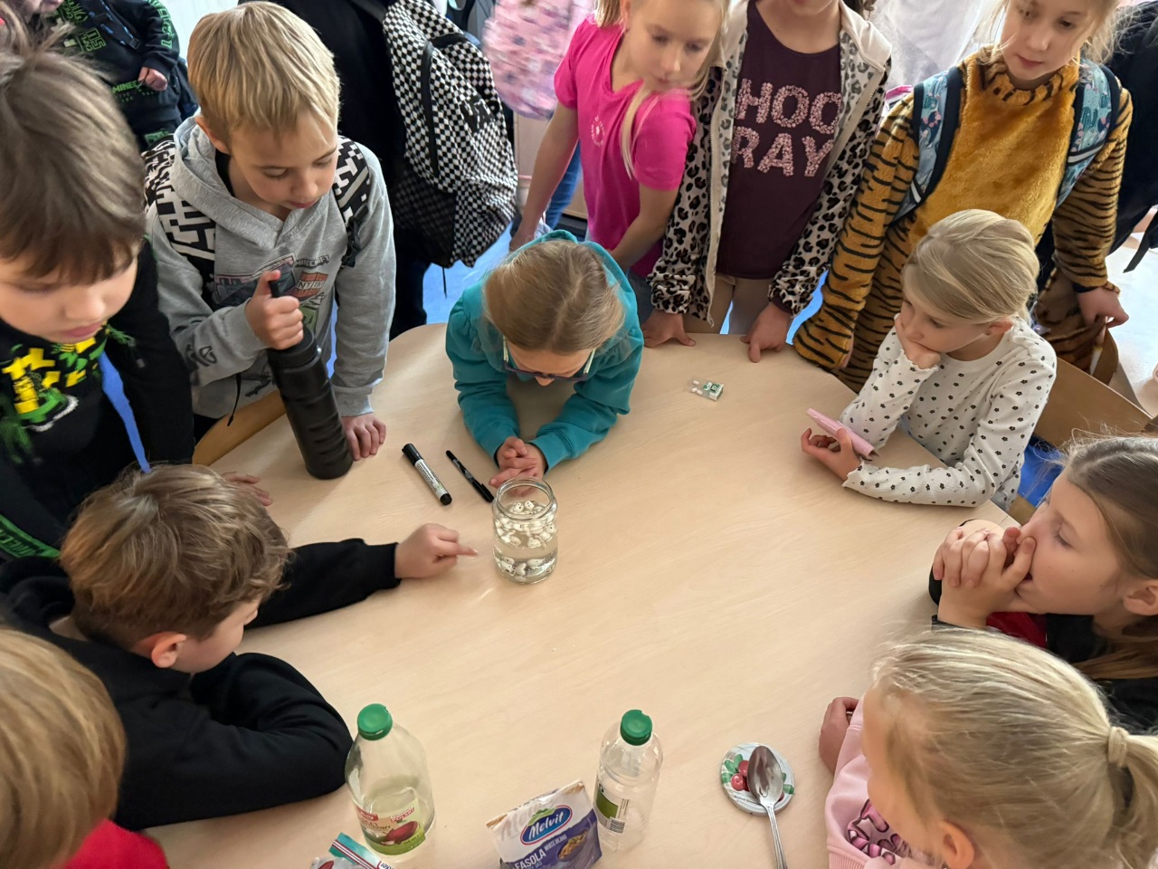 Nasi uczniowie pogłębiają wiedzę o otaczającym nas świecie poprzez liczne doświadczenia fizyczno - chemiczne, które dokonywane są w świetlicy szkolnej. Każdemu uczniowi tego rodzaju zajęcia sprawiają dużo przyjemności i zaangażowania.