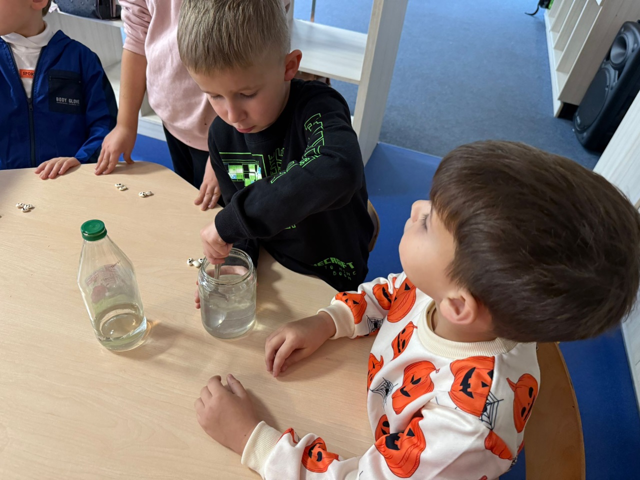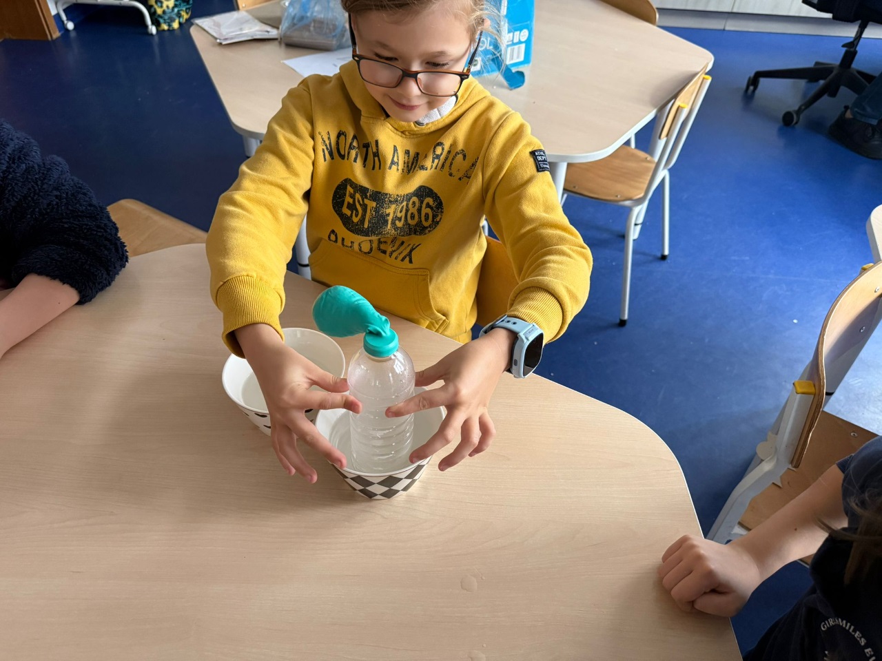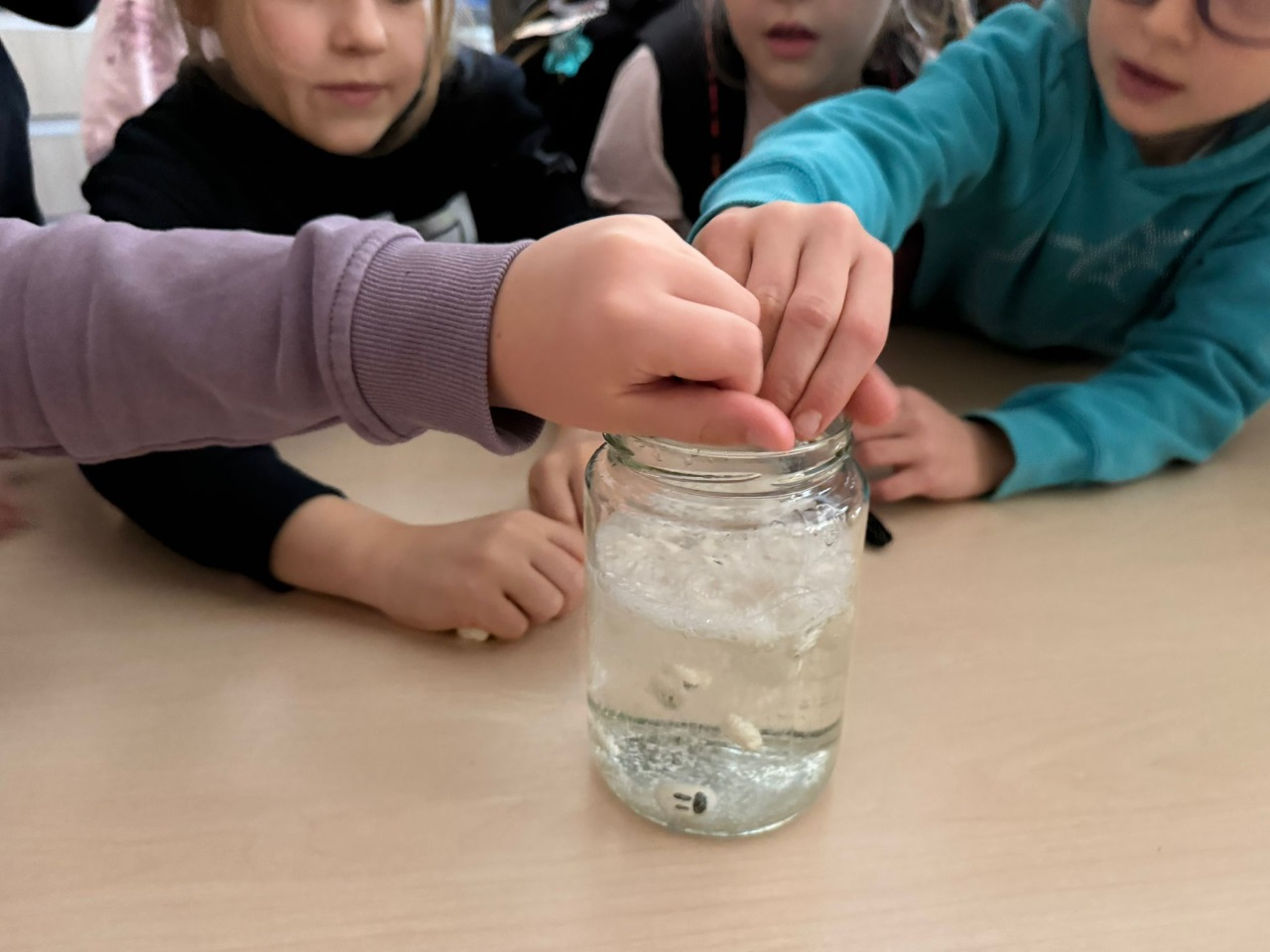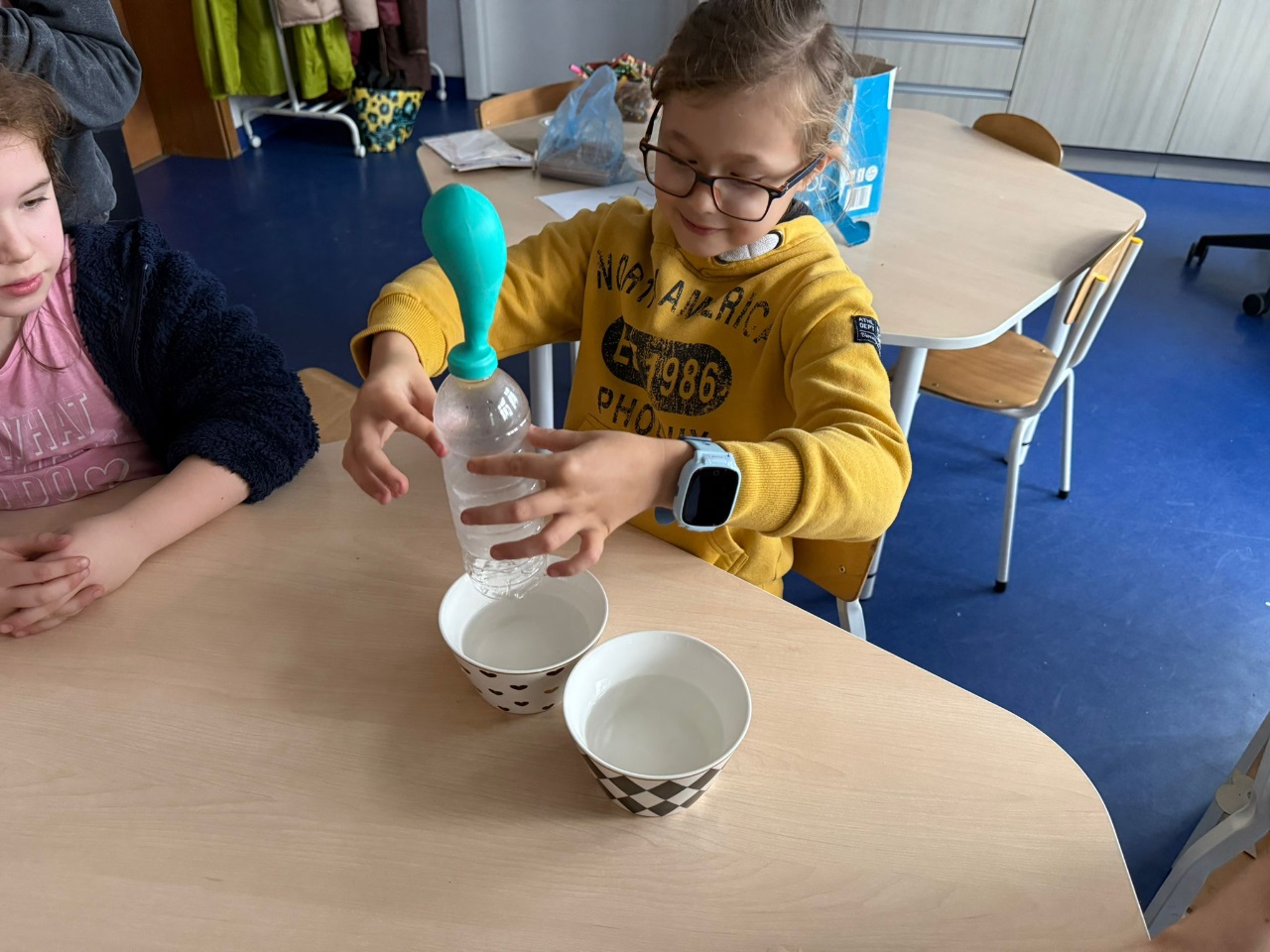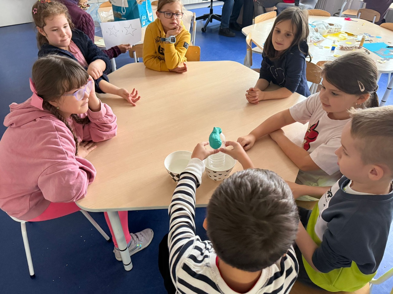 Nasi uczniowie pogłębiają wiedzę o otaczającym nas świecie poprzez liczne doświadczenia fizyczno - chemiczne, które dokonywane są w świetlicy szkolnej. Każdemu uczniowi tego rodzaju zajęcia sprawiają dużo przyjemności i zaangażowania.