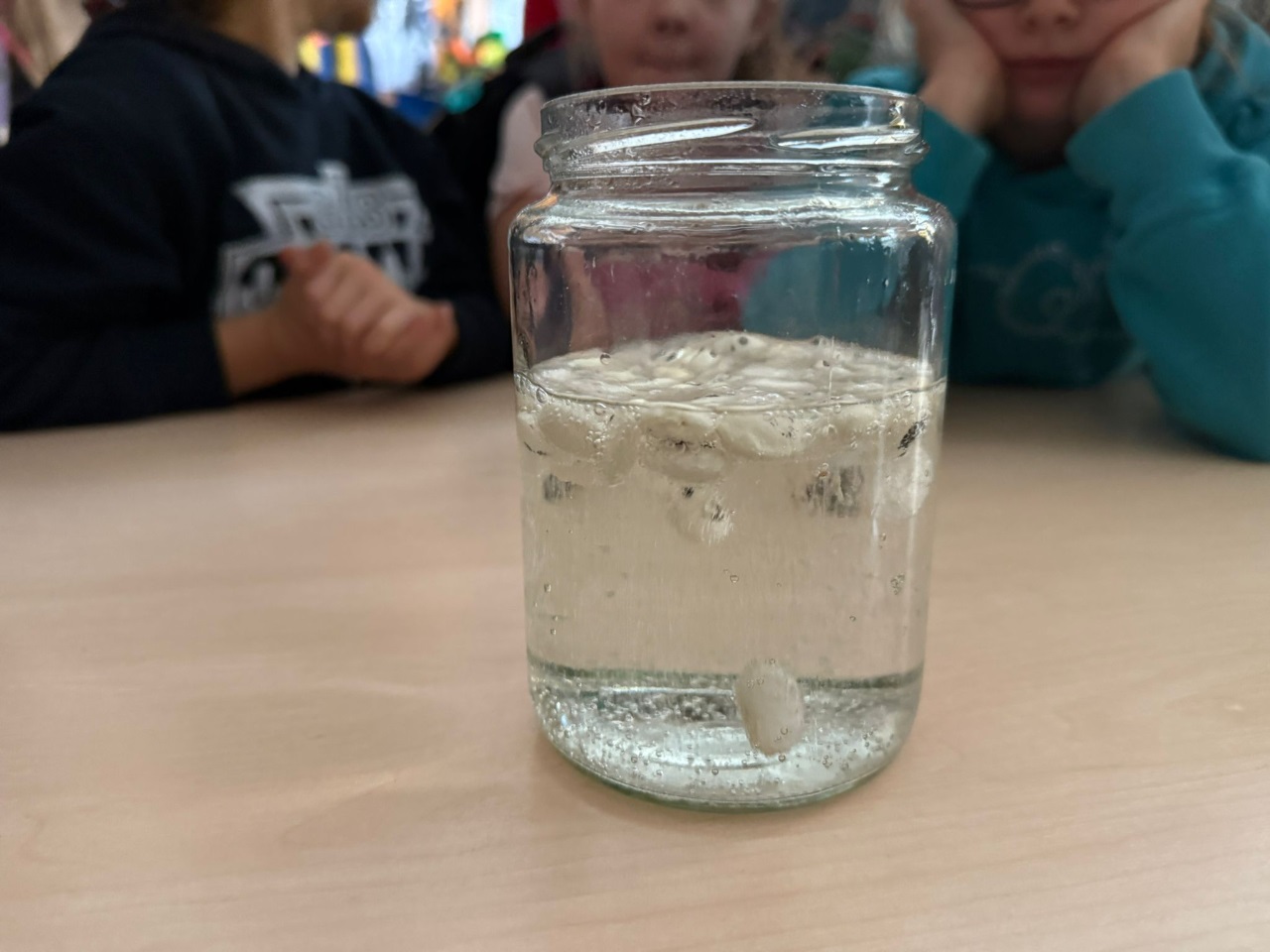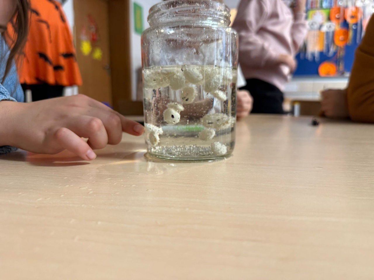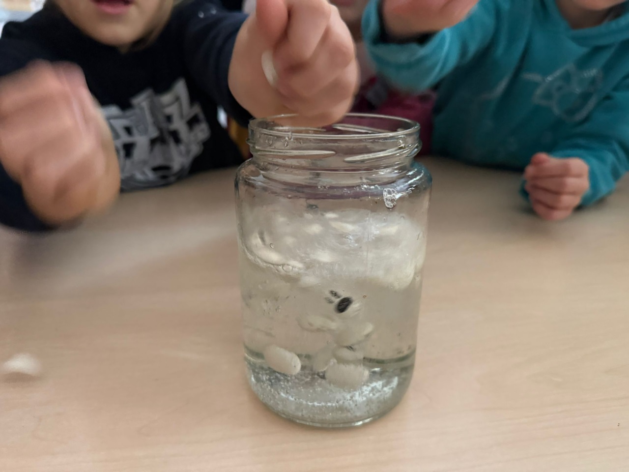 - Skaczące jajko: surowe jajko w słoiku zanurzone w occie na 24h. W trakcie reakcji chemicznej węglan wapnia ze skorupki jajka rozpuszcza się pozostawiając jedynie elastyczną błonę pod spodem.