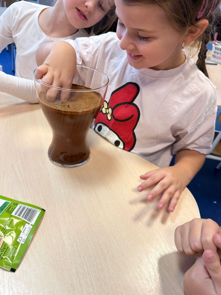 - Tęcza na talerzu: ma na celu pokazanie jak barwniki rozpuszczają się po podaniu wody tworząc smugi.