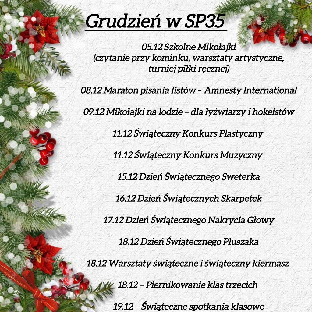 Grudniowe kalendarium Naszej Szkoły - Szkoła Podstawowa nr 35 z Oddziałami Sportowymi im. Jana Parandowskiego