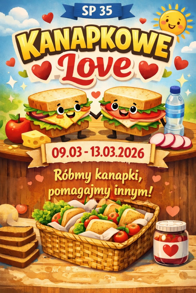 Od 9 marca do 13 marca - czyli od poniedziałku do piątku każdy chętny uczeń przynosi kanapkę lub kanapki na dyżurkę szkoły do godz.10.00.