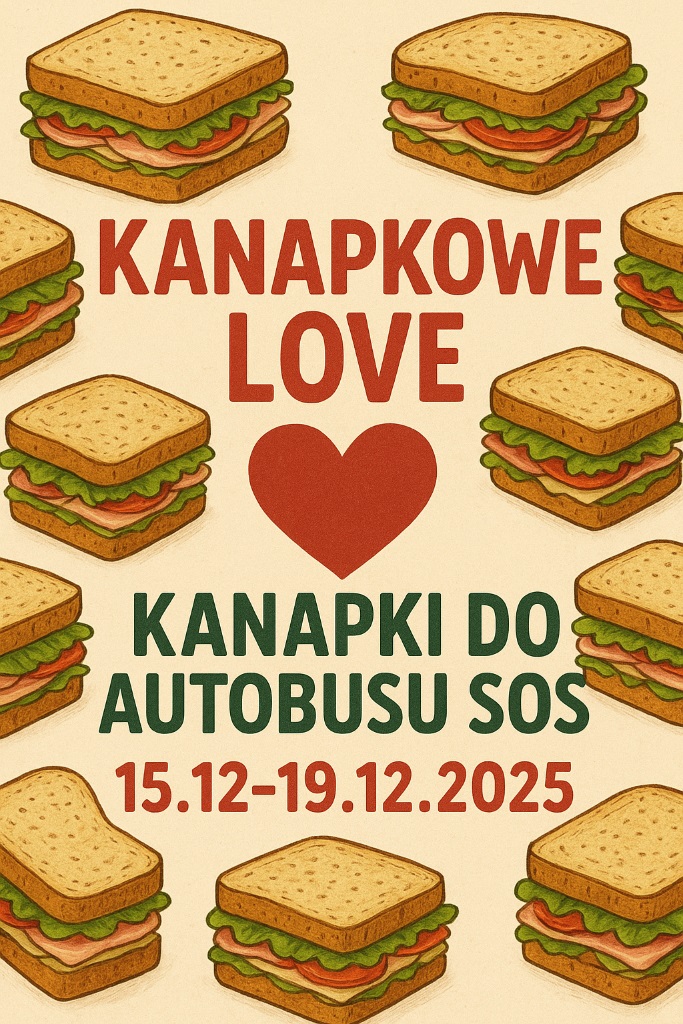 w dniach 15–19 grudnia 2025 r. nasza SP 35 dołącza do niezwykłej, pięknej i potrzebnej akcji KANAPKOWE LOVE – kanapki dla Autobusu SOS, który jeździ codziennie po Gdańsku.To właśnie z Waszą pomocą możemy zrobić coś dobrego, coś co naprawdę ma znaczenie.