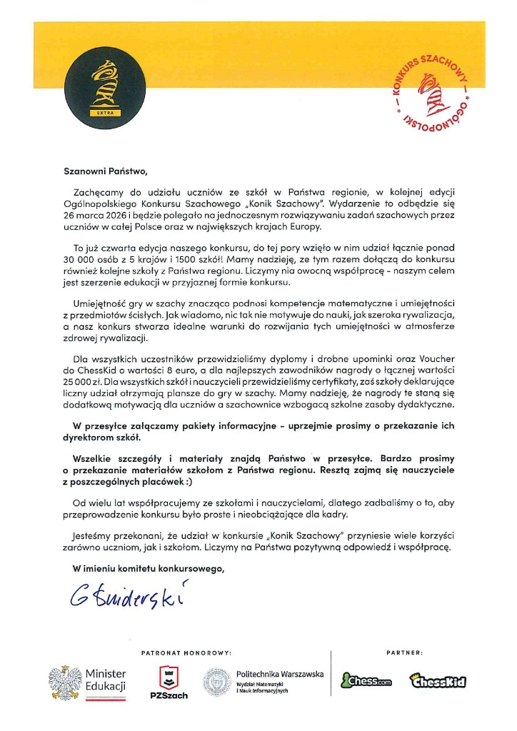 Konik Szachowy 2026 - Szkoła Podstawowa nr 35 z Oddziałami Sportowymi im. Jana Parandowskiego