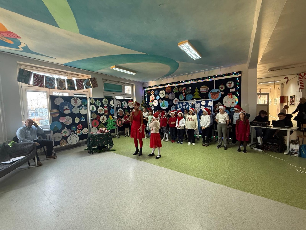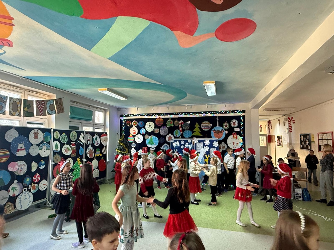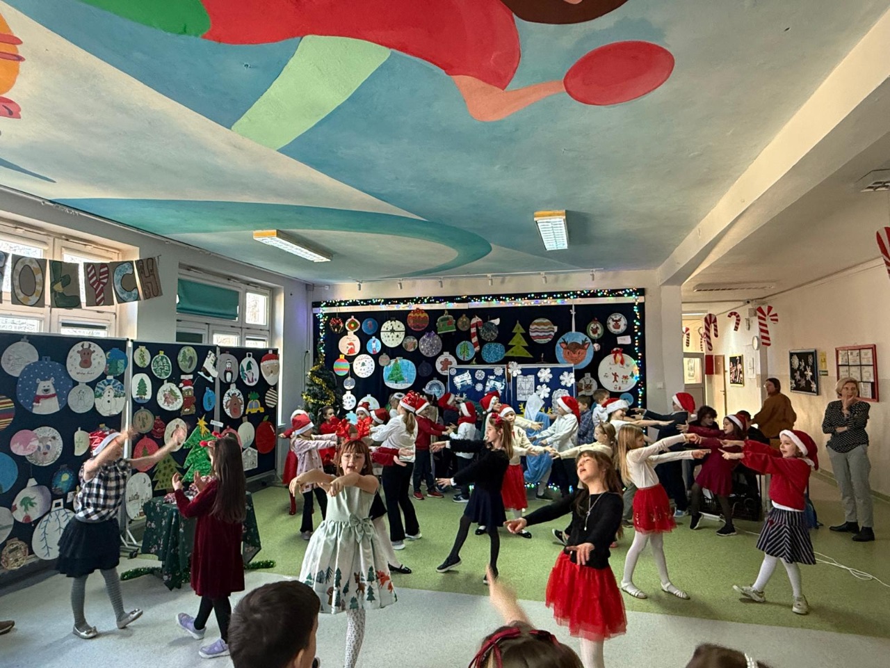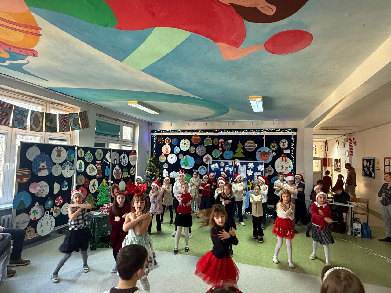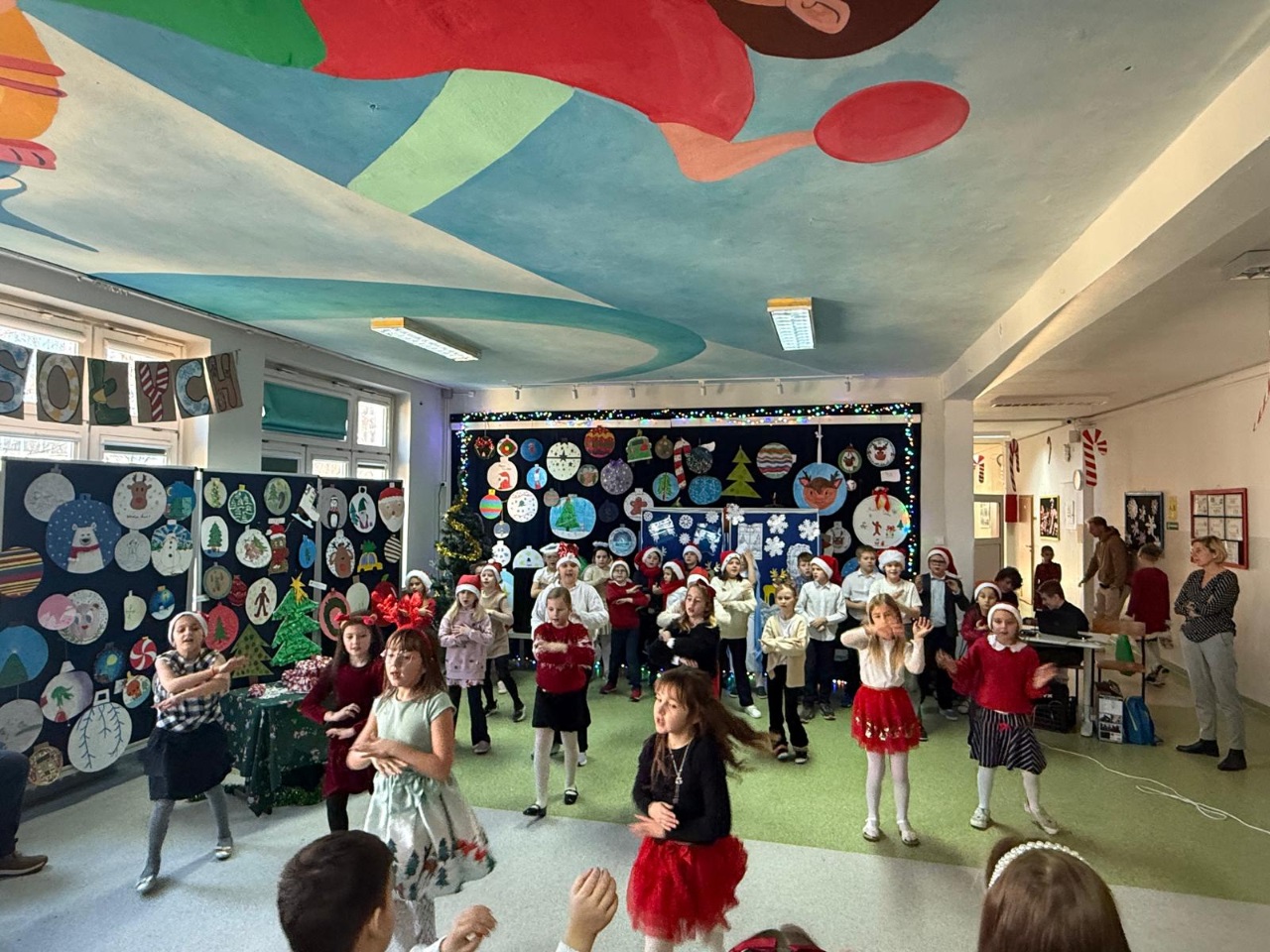 19 grudnia świetlica szkolna przygotowała piękne przedstawienie bożonarodzeniowe dla uczniów klas 1–3 oraz pracowników szkoły. Dzieci z wielkim zaangażowaniem zaprezentowały przygotowany program artystyczny – tańczyły, recytowały wiersze oraz śpiewały, wprowadzając wszystkich w radosny, świąteczny nastrój. Na zakończenie mali artyści złożyli wszystkim obecnym serdeczne życzenia bożonarodzeniowe, które spotkały się z ciepłym przyjęciem i gromkimi brawami.